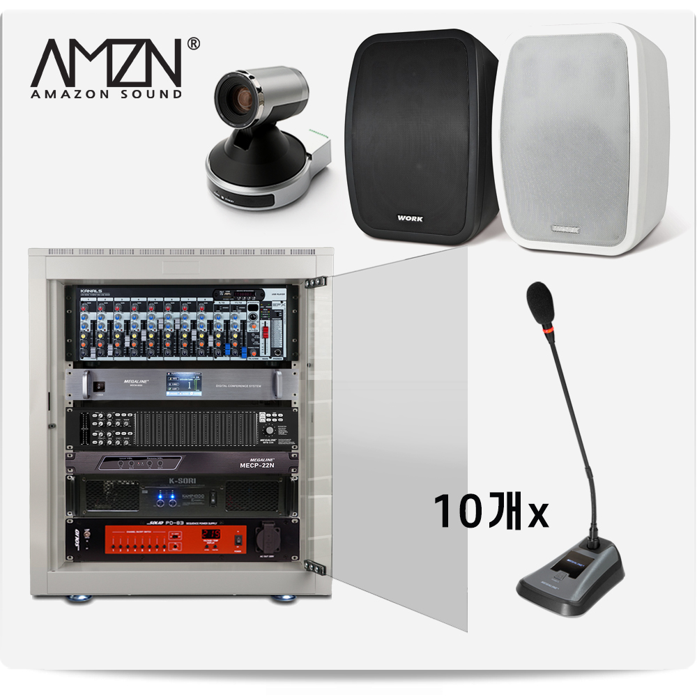 GLF-SET-C 유선구즈넥마이크 화상회의 유선회의용마이크 회의용시스템 스탠드마이크 PTZ카메라 디지털에코캔슬러 학교 회사 회의실 마이크10개