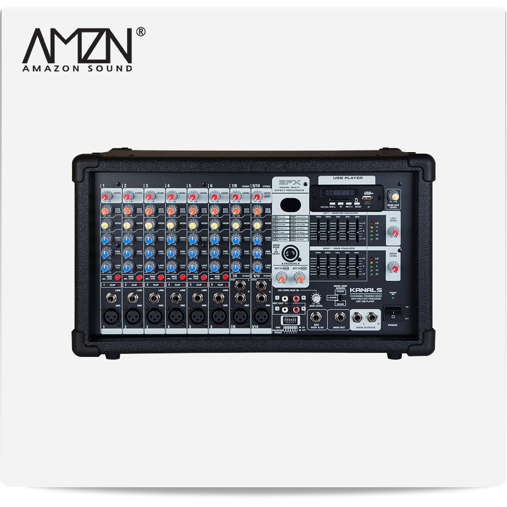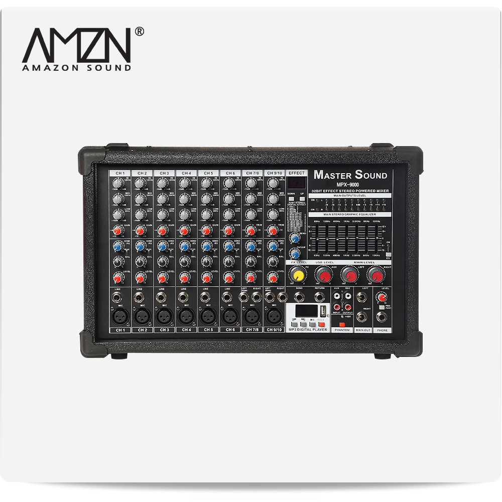 MPX-9000 MPX9000 1200W 10채널 파워드믹서 앰프내장형믹서 MIC AUX USB 기능