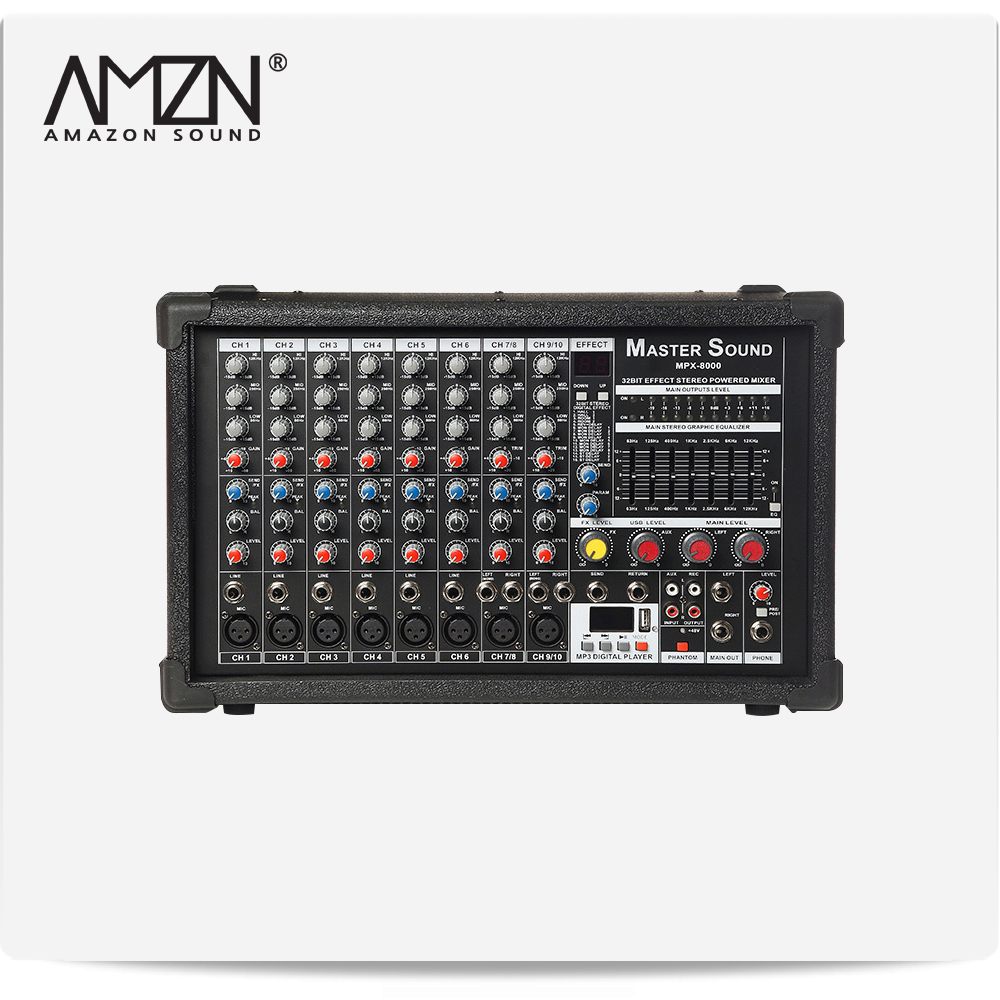 MPX-8000 MPX8000 800W 10채널 파워드믹서 앰프내장형믹서 MIC AUX USB 기능