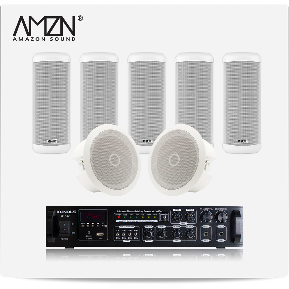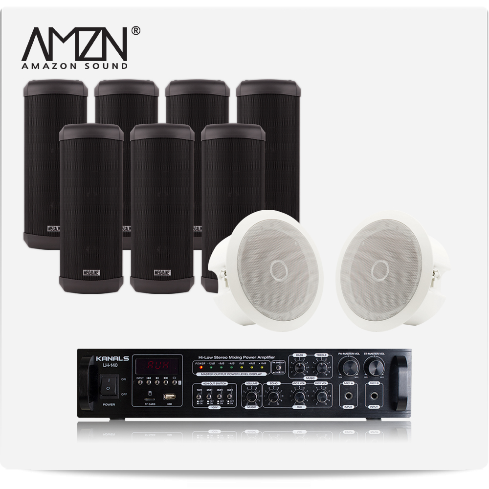 EKC-SET-J 실내 실외 옥외용스피커 방수스피커 컬럼스피커 천정매립형실링스피커 전문가용 HI-LOW겸용앰프 스피커7개