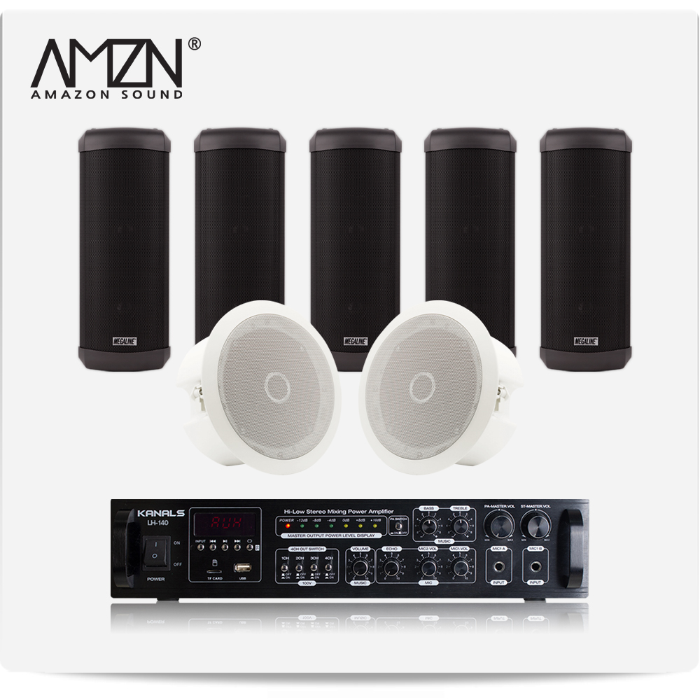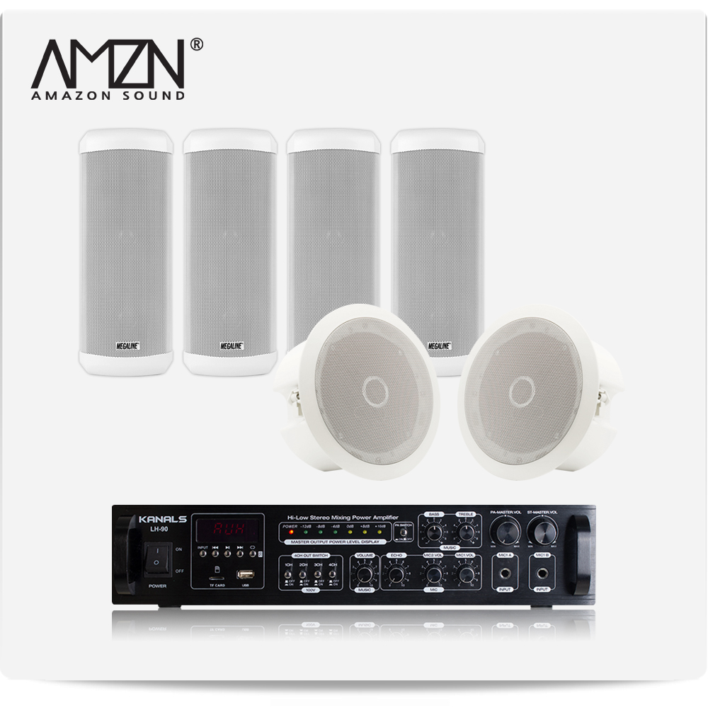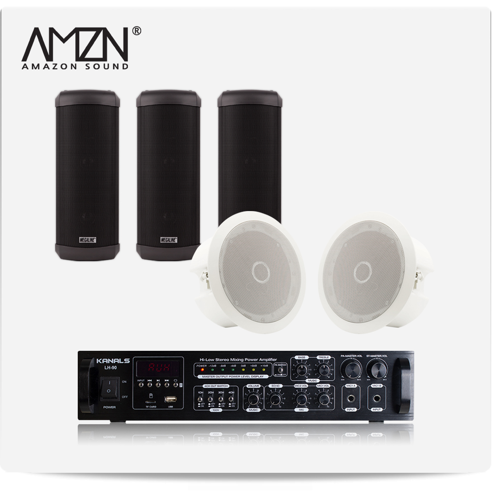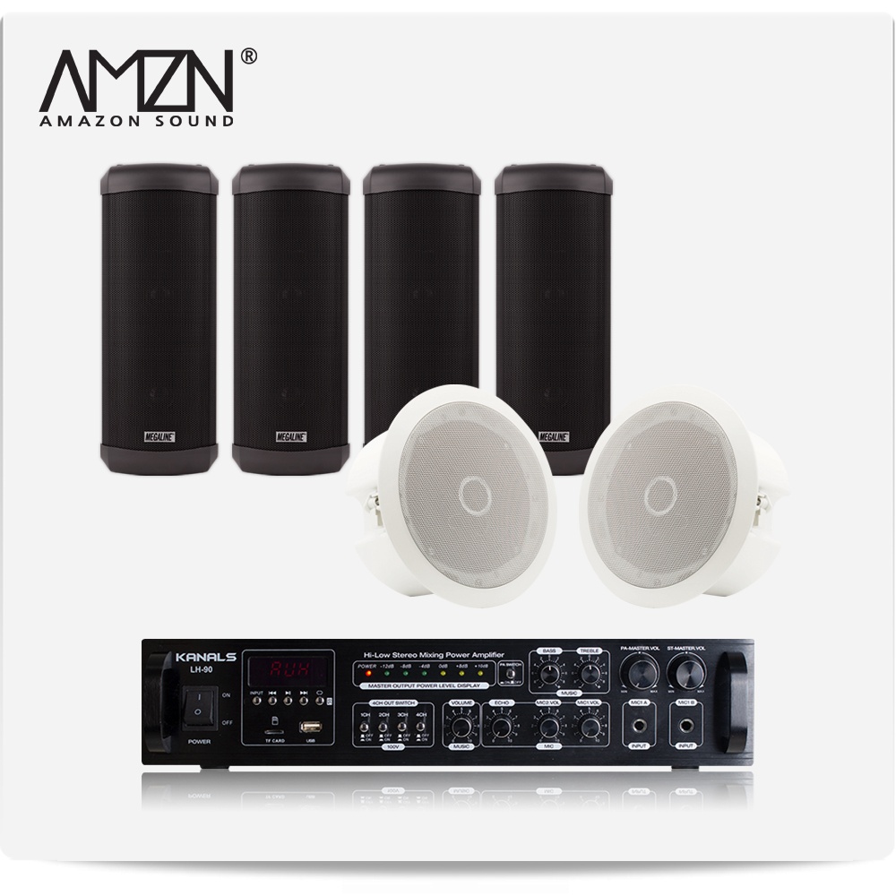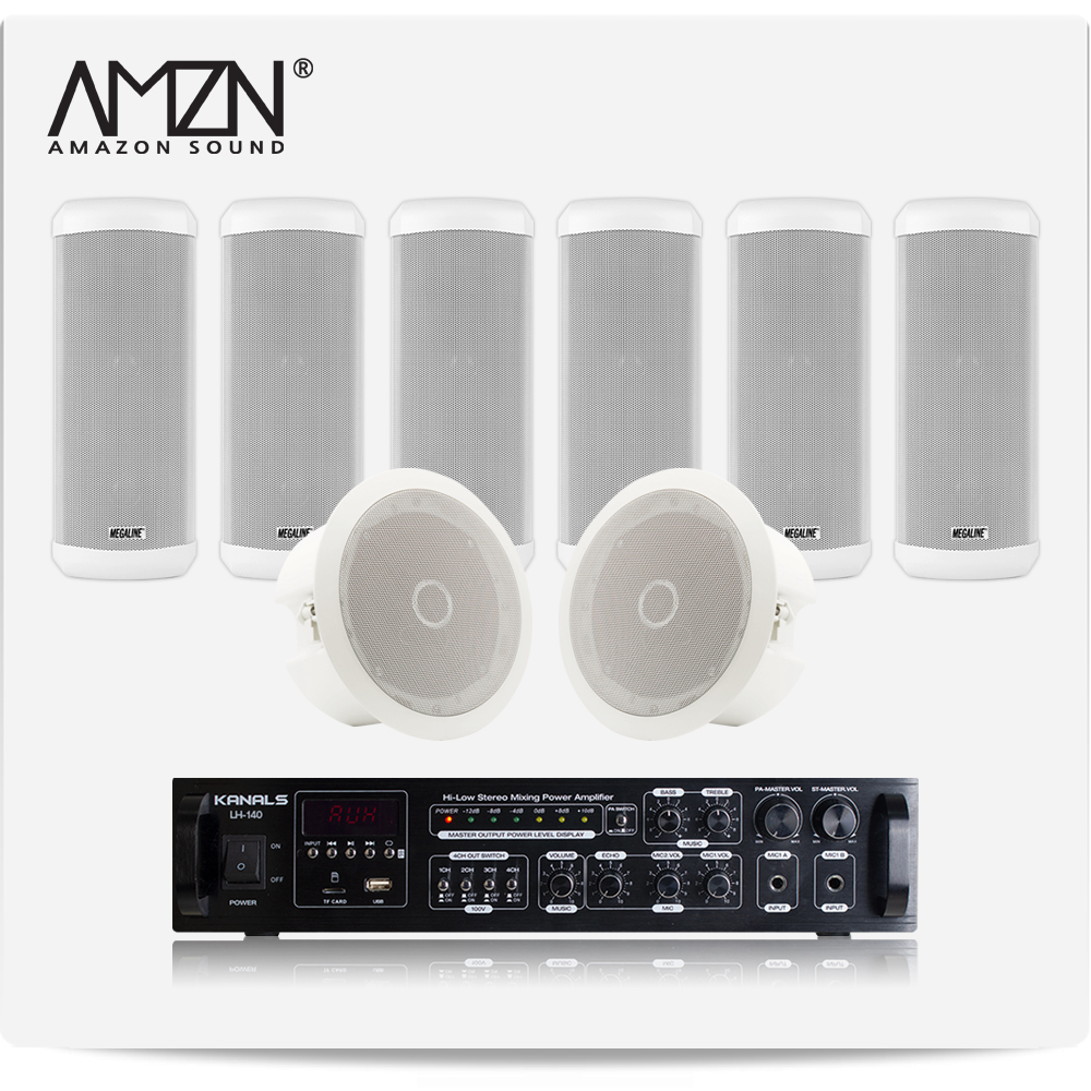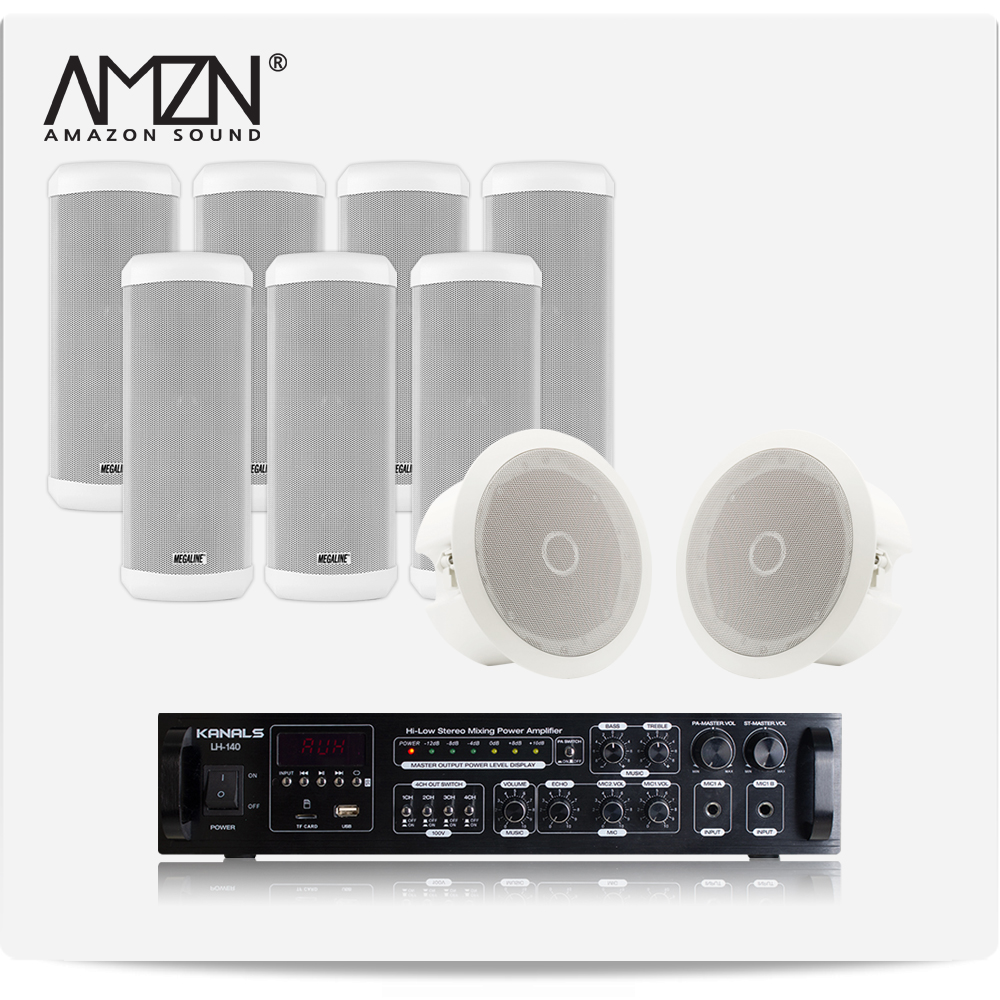 EKC-SET-C 실내 실외 옥외용스피커 방수스피커 컬럼스피커 천정매립형실링스피커 전문가용 HI-LOW겸용앰프 스피커6개