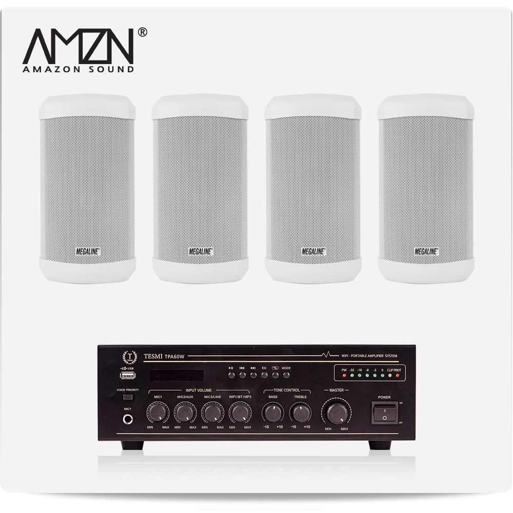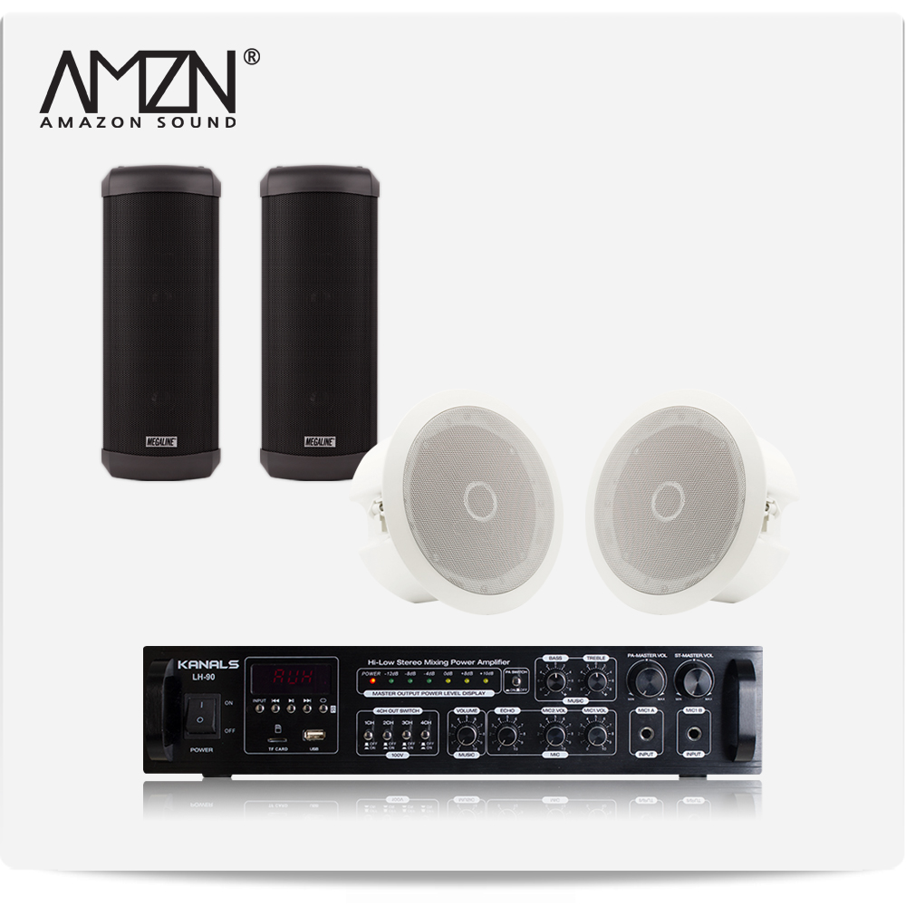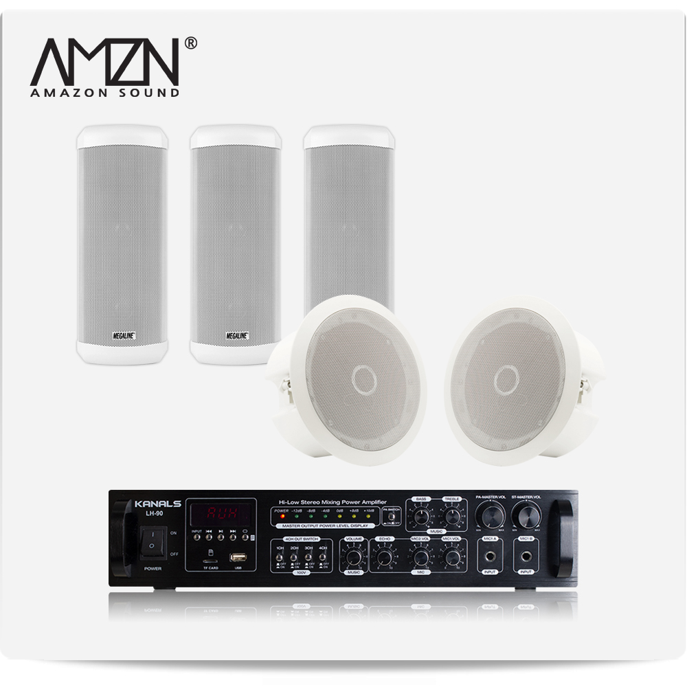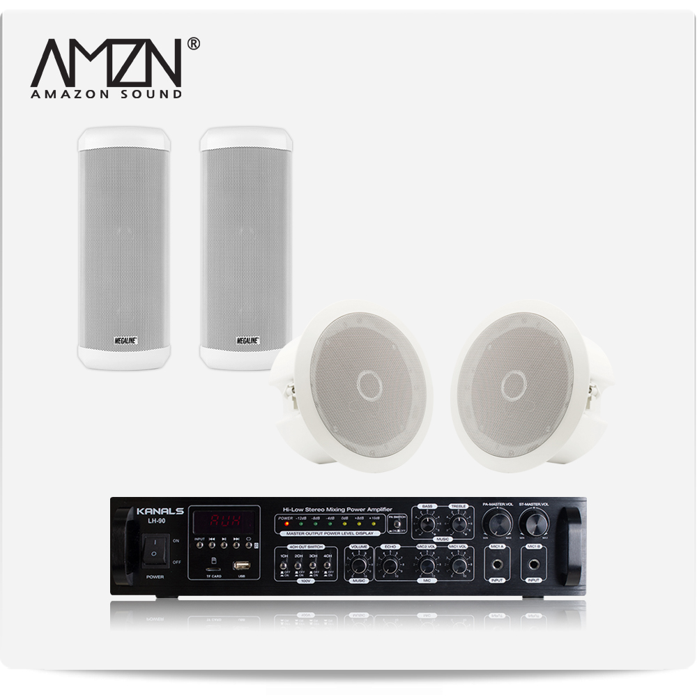 EKC-SET-A 실내 실외 옥외용스피커 방수스피커 컬럼스피커 천정매립형실링스피커 전문가용 HI-LOW겸용앰프 스피커4개