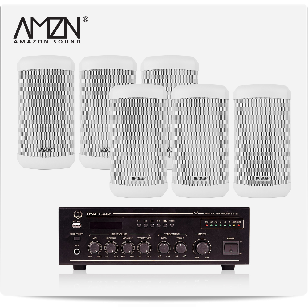 EKC-SET-F 실내 실외 옥외용스피커 방수스피커 컬럼스피커 천정매립형실링스피커 전문가용 HI-LOW겸용앰프 스피커6개