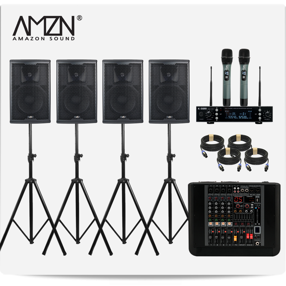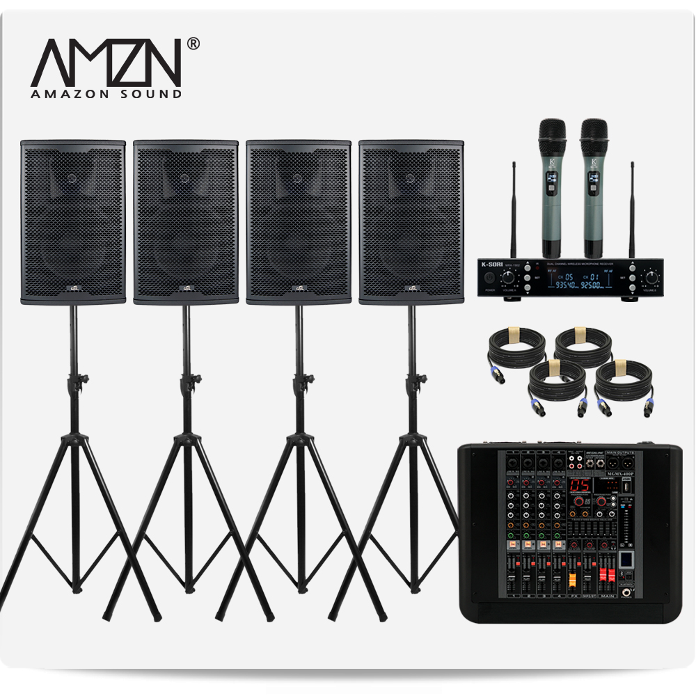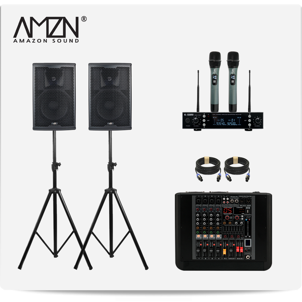 DI-SET-K 800W 10인치 파워드믹서 패시브스피커 행사용 이벤트장비 스탠드형 스피커케이블 모니터스피커