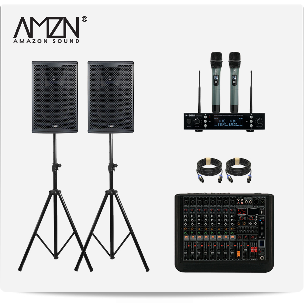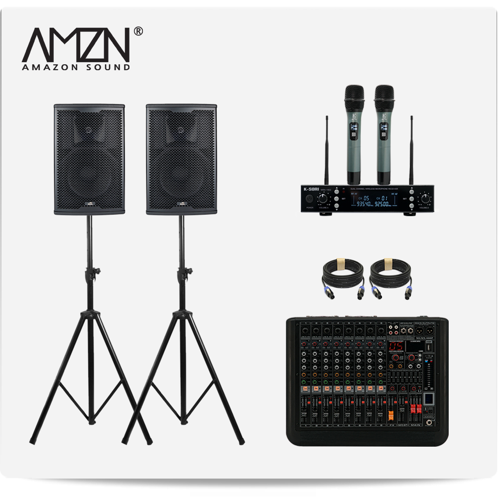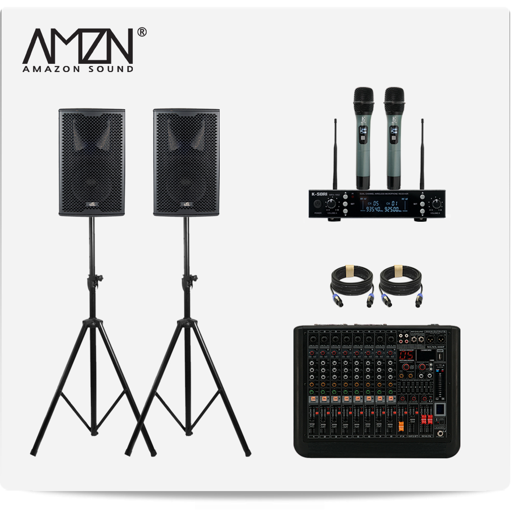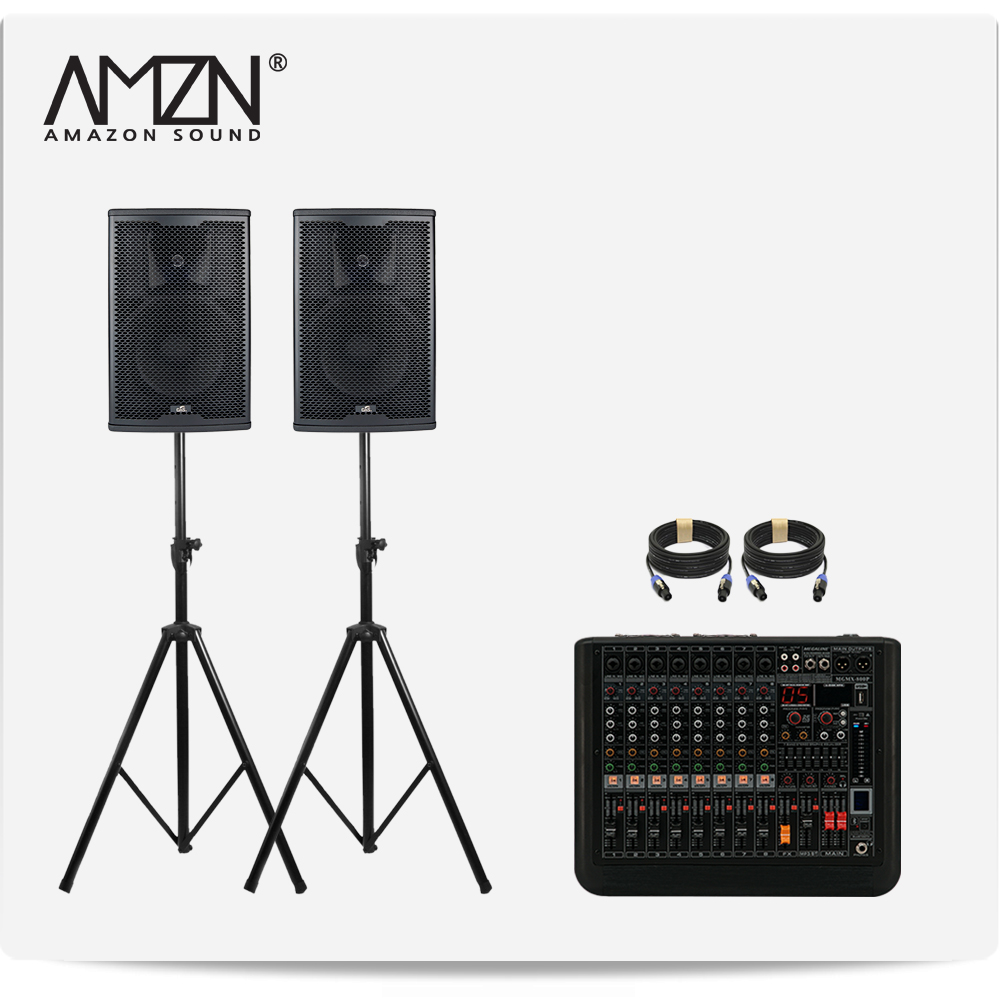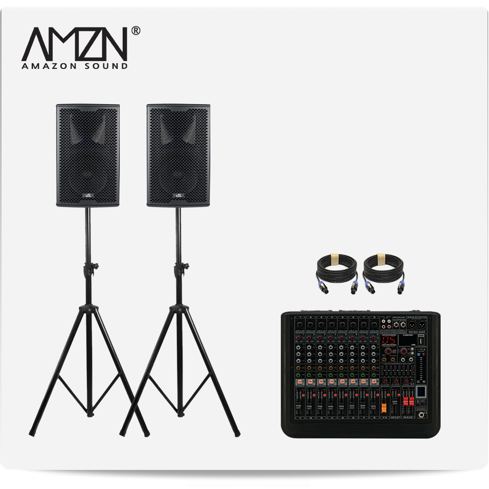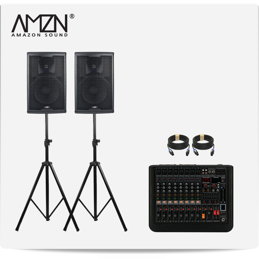 DJ-SET-A 300W 8인치 파워드믹서 패시브스피커 행사용 이벤트장비 스탠드형 스피커케이블