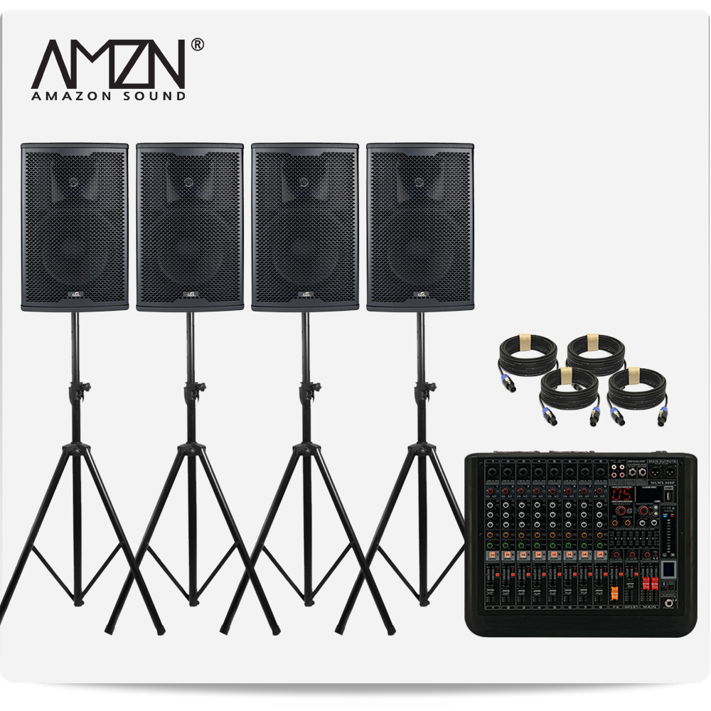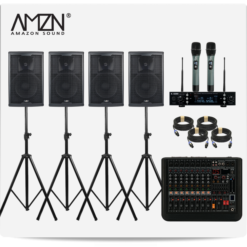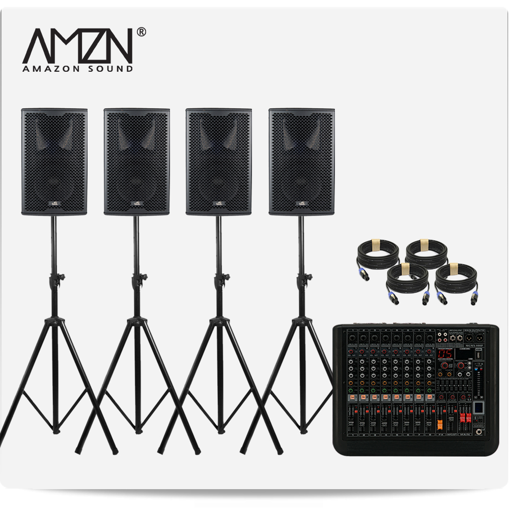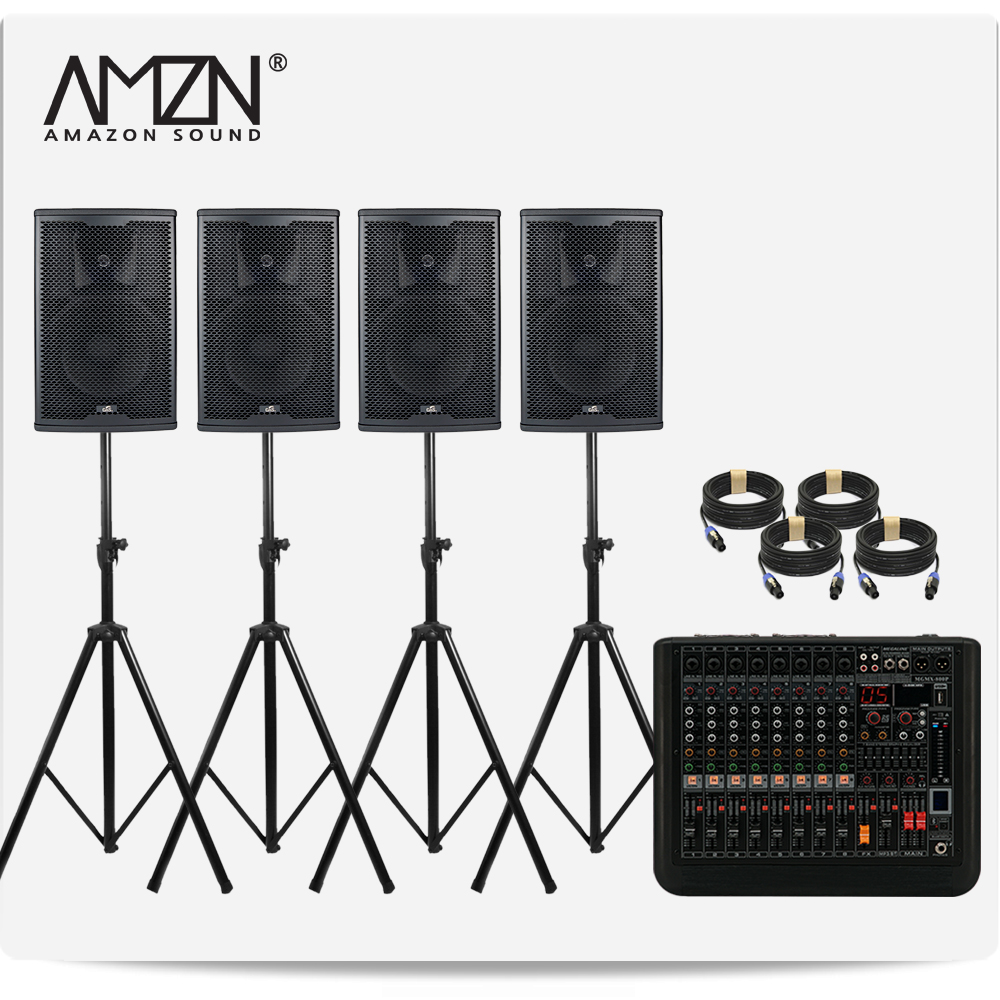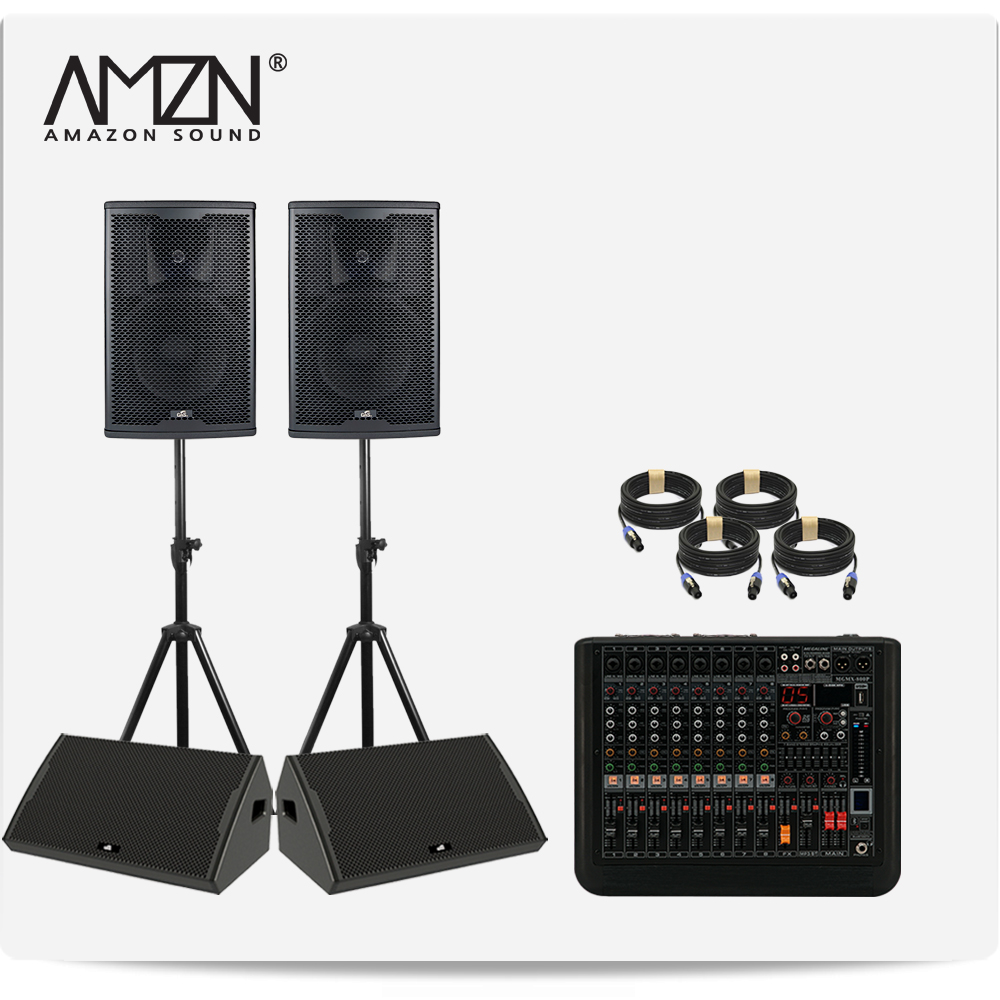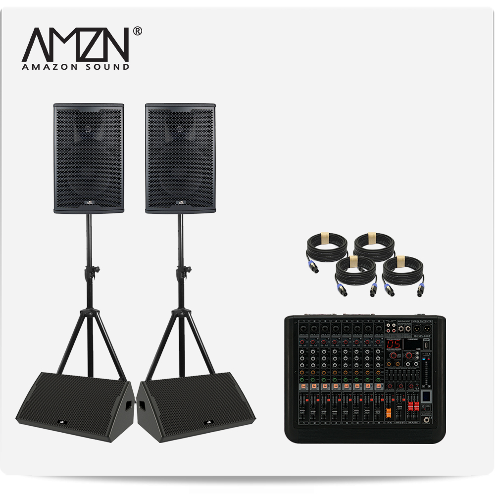DJ-SET-A 300W 8인치 파워드믹서 패시브스피커 행사용 이벤트장비 스탠드형 스피커케이블