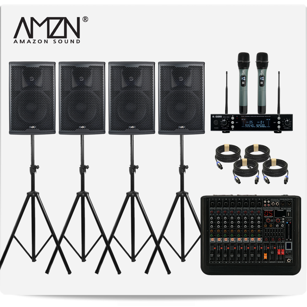 DJ-SET-O 600W 12인치 파워드믹서 패시브스피커 행사용 이벤트장비 스탠드형 무선마이크 스피커케이블