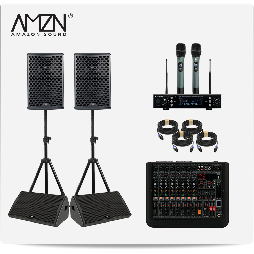 DJ-SET-K 800W 10인치 파워드믹서 패시브스피커 행사용 이벤트장비 스탠드형 스피커케이블 모니터스피커