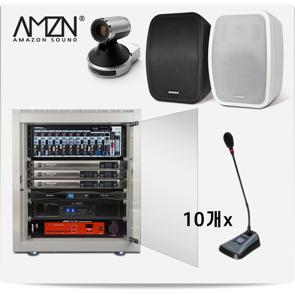 GKF-SET-C 무선구즈넥마이크 화상 무선회의용마이크시스템 스탠드마이크 PTZ카메라 에코갠슬러 파워앰프 마이크10개