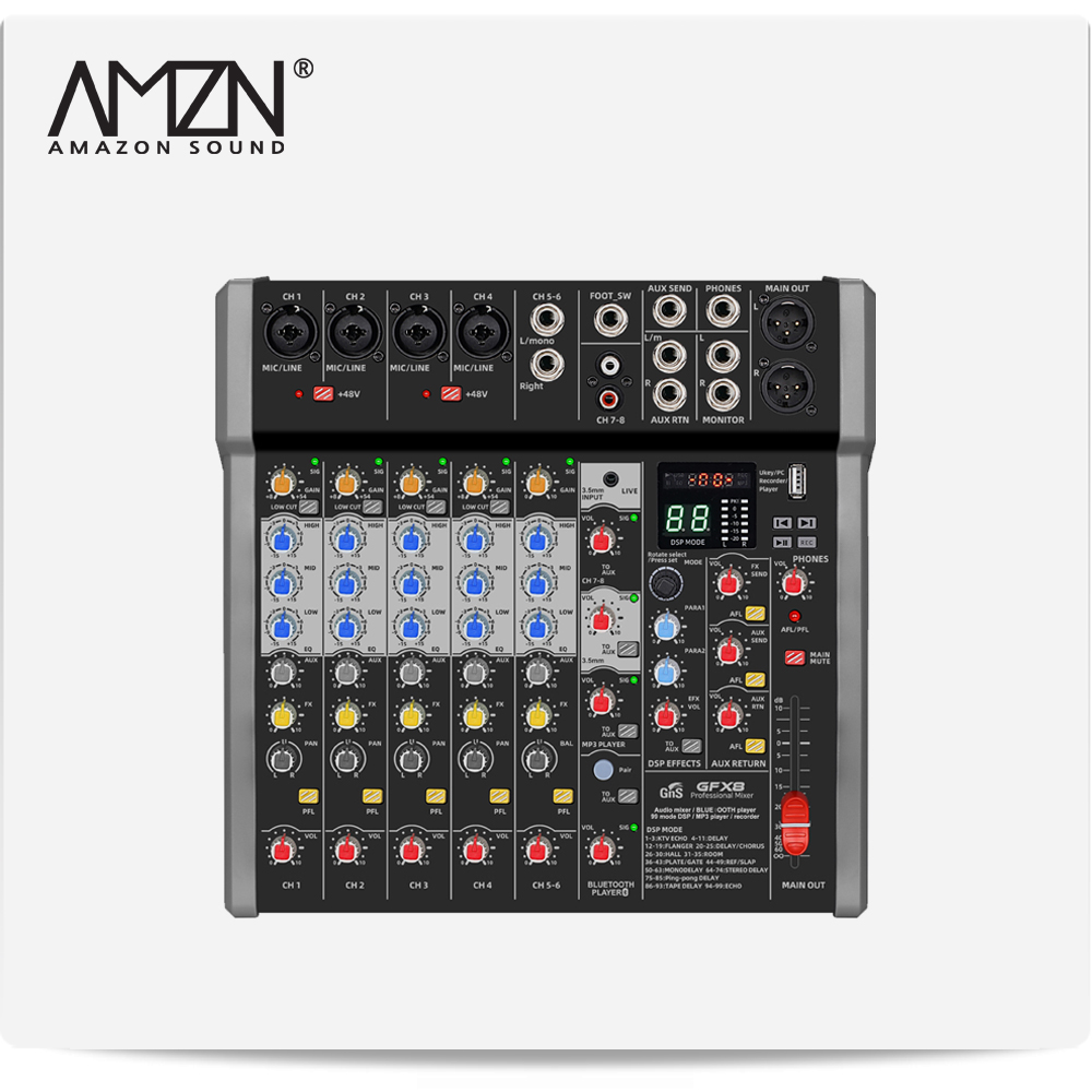 GNS GFX8 GFX-8 8채널 아날로그 오디오믹서 콘솔믹서 블루투스 녹음 USB AUX
